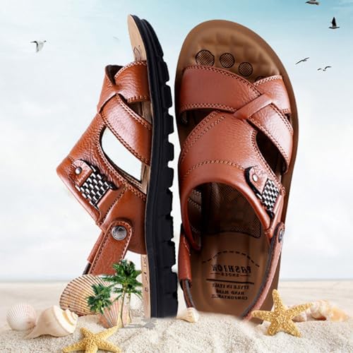 Men's Leather Casual Flat Sandals with Adjustable Dual use Ankle Straps Open Toe Cutout Anti-Slip Summer Breathable Sandals