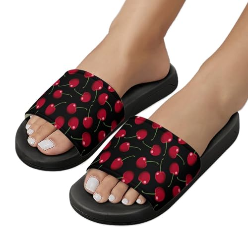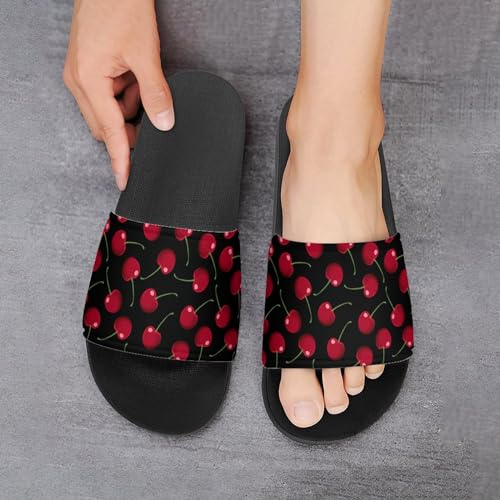 Red Cherries Black Womens Slide Sandals Non Slip Summer House Slippers for Girls Slip-on Flip Flops