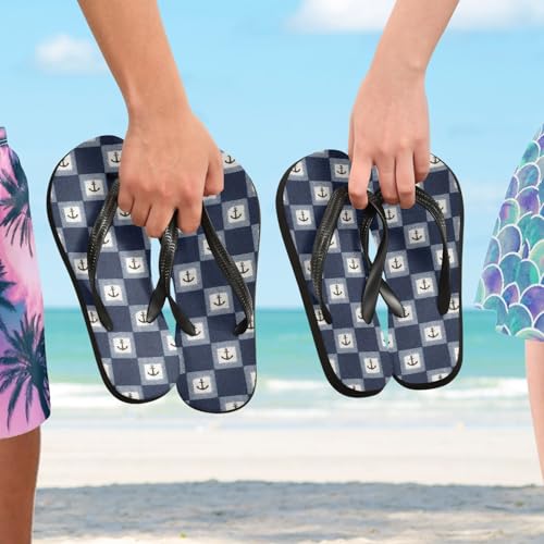 popular ! Flip Flop Sandals Nautical Plaid Print for Women Men Beach Outdoor XS