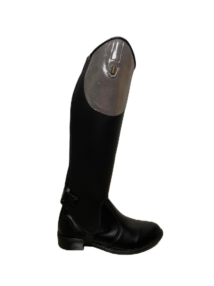 Czapsy z bordową wstawką brokatową wykonane ze skóry naturalnej bydlęcej,licowej gat.1. Z tyłu wstawka z elastycznej gumy (rozciągliwość do 1cm) zapinane na zamek, góra czapsów lamowana skórą.