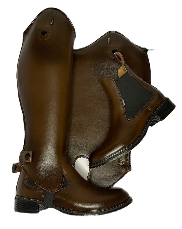 Obuwie oraz czapsy wykonane ze skóry naturalnej bydlęcej w kolorze ciemnego brązu wraz z podszewką skórzaną . Sztyblety możliwe z ociepleniem. Cena bez zmian. Spód TR(antypoślizgowy) wzmacniany stalką.